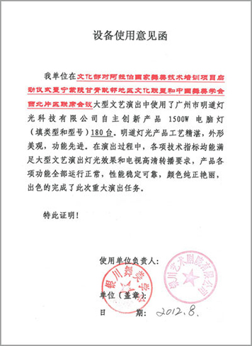 银川舞美学会设备使用函